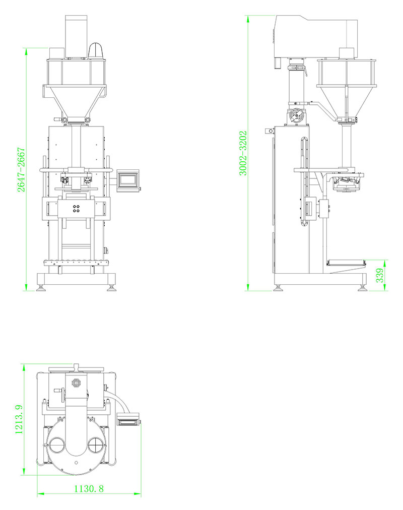 該機主要針對容易揚塵的超細粉末及高精度的包裝要求而開發(fā)設計,根據(jù)裝在容器下面的重量傳感器給出的信號完成雙速充填、計量及升降等工作,適用于包裝添加劑、碳粉、滅火器干粉、其它超細粉末、及有高精度包裝要求的粉末等。