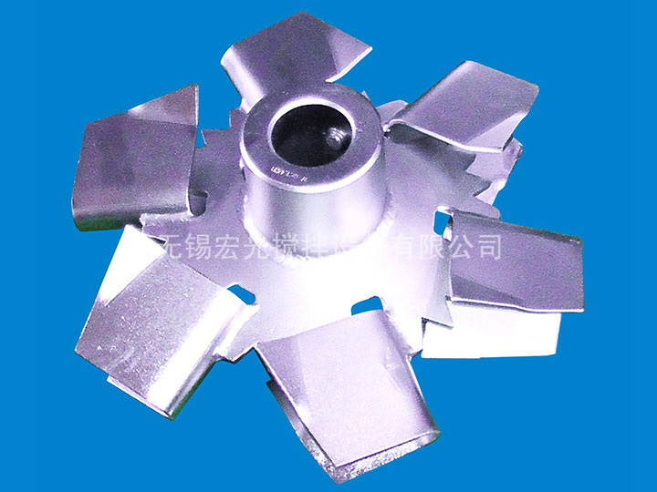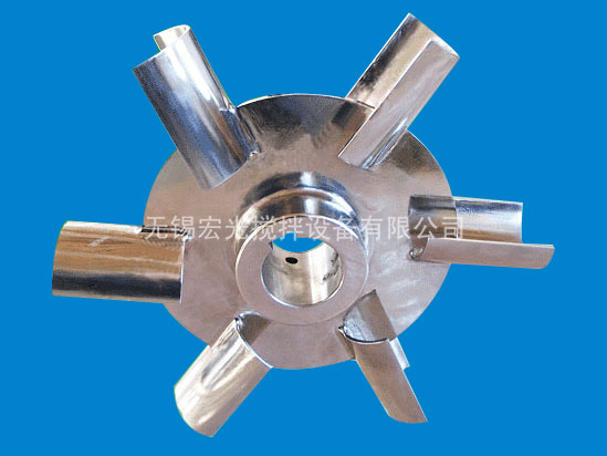 槳葉的外徑、寬度與高度的比例,一般為20:5:4, 圓周速度一般為 3~8m/s。渦輪在旋轉時造成高度湍動的徑向流動,適用于氣體及不互溶液體的分散和液液相反應過程。被攪拌液體的粘度一般不超過25Pa·s。			由在水平圓盤上安裝2~4片平直的或彎曲的葉片所構成。