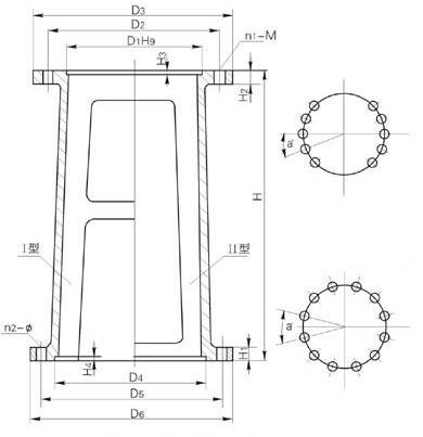 | D1 | D2 | D3 | n1-M | D4 | D5 | D6 | a° | n2-φ | H | 重量(kg) | H | 重量(kg) | |||||